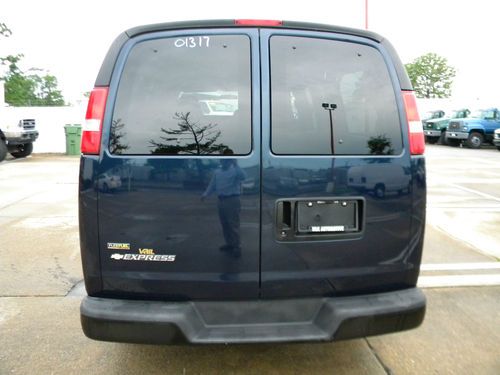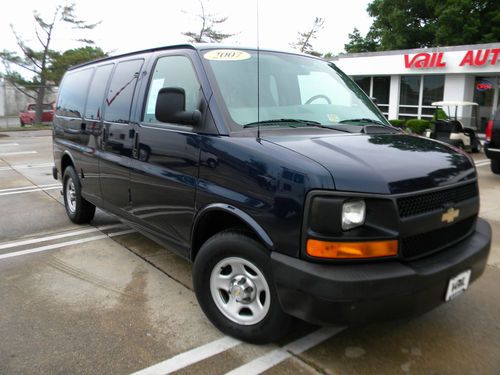 WE ARE OFFERING A 2007 CHEVROLET G1500 EXPRESS 8 PASSENGER VAN WITH ONLY 9,000 ORIGINAL DOCUMENTED MILES. THIS IS AN EX GOVERNMENT WITH AN EXCELLENT SERVICE HISTORY. THE ENGINE RUNS SMOOTH WITH NO LEAKS AND THE TRANSMISSION SHIFTS PERFECT WITH NO HESITATIONS. OPTIONS ON THIS EXPRESS INCLUDE: 5.3 V-8 ENGINE, AUTO TRANSMISSION, POWER STEERING, 8 PASSENGER SEATING,ABS BRAKES, TILT WHEEL, A/C, DUAL AIRBAGS, AM/FM/CD RADIO,REAR A/C, GRAY CLOTH SEATS, RUBBER FLOOR COVERING, MANUAL WINDOWS,MANUAL MIRRORS, TINTED WINDOWS, AND REAR BARN DOORS. WE ARE A VIRGINIA DEALER #4137, SERVING OUR AREA SINCE 1996. WE STOCK OVER 100 COMMERCIAL VEHICLES READY FOR DELIVERY!!! THIS CHEVY VAN HAS BEEN VIRGINIA STATE INSPECTED, SERVICED AND IS READY FOR DELIVERY. ALL RETAIL SALES ARE SUBJECT TO A $250.00 PROCESSING FEE TO COVER TEMPORARY TAGS AND TITLE TRANSFER FEES. WINNING BIDDERS MUST CONTACT US WITHIN 48 HOURS AFTER THE AUCTION ENDS. IF YOU HAVE ANY QUESTIONS, PLEASE CALL (800) 569-7278 OR (757) 461-7552. THANKS FOR LOOKING AND GOOD LUCK WITH YOUR SEARCH.