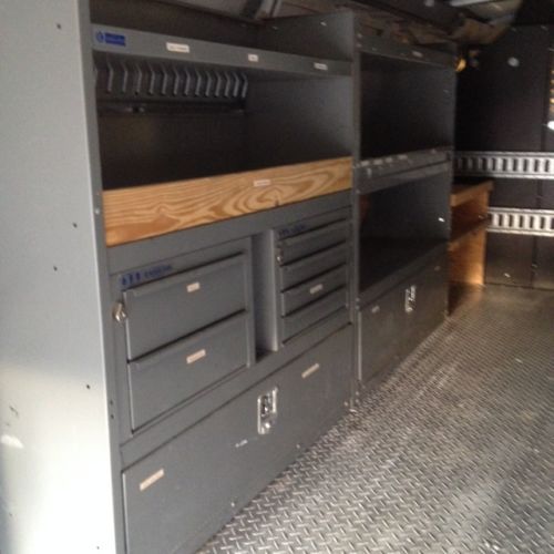 NICE CLEAN EXTENDED VAN FOR CONSTRUCTION, CARPET LAYER, PAINTER, ELECTRICIAN OR ALL AROUND GENERAL USE. TIRES ARE 10 PLY WITH ABOUT 80% TREAD LEFT. COLD AIR AND WARM HEAT. BEING A 1 TON IT CAN HAUL A LOAD AND ALSO HAS TRAILER RECEIVER WITH BRAKE CONTROL. THE BINS ARE ALL CLEAN -NOT RUSTY OR COVERED IN OILS ETC. DIAMOND PLATE FLOOR IN CARGO AREA ALONG WITH PLENTY OF STORAGE BINS AND RACKS.. INTERIOR OF CAB AREA IN EXCELLENT CONDITION NO TEARS STAINS, DASH IS NOT SPLIT AND HAS FULL RUBBER MATS FOOR FLOOR. I HAVE USED THIS AS A DAILY DRIVER FOR MY SMALL CONSTRUCTION BUSINEES AND IT HAS NEVER LET ME DOWN. WE HAVE ANOTHER VAN AND AT THIS TIME DO NOT NEED TWO. IF YOUR LOOKING FOR A WORRY FREE VEHICLE THIS IS IT, HAS HAD REGULAR OIL CHANGES AND TIRE ROTATION . GARAGE KEPT. |