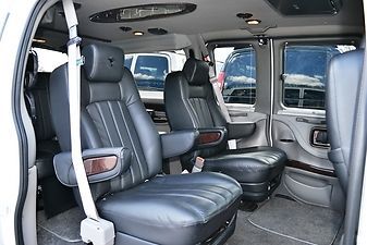 2012 Fully Loaded Chevrolet conversion van on a Suburban chasse finished at Explorer Limited in Warsaw, Indiana. Four leather captain chairs in two front rows with a leather couch in third row which automatically converts to a bed or moves forward to give more cargo room. 15 inch television and DVD player with USB ports throughout the vehicle. Towing package is installed. Features: Interior: Black Leather Seating, Gray Sidewalls & Plush Carpet, Escalade Hi Gloss Wood Accents & Trim Throughout. Engine: 5.3L V8, 301HP, 4-speed automatic, Stabilitrak, Flex Fuel. Body: 1500, Comfortable Seating for 7 passengers Doors: 6, Including rear cargo doors Climate Control: Front and Rear A/C and Heat with rear controls "Dual Zone". Front Seating: Glove Leather, Heated, Dual 6-way power, Power lumbar, Power recline, with Self leveling armrests. Easy Access to Center Console with Cooler, Map Pockets & Extra Drink Holders. Rear Sofa: Power slide, Power recline, 3-section Sofa / Bed, Rear cargo net, Sunroof: Power, Yes with Auto close and Sun shade Front Entertainment System: GM Navigation, AM/FM stereo with CD/MP3 player and Auxiliary audio input jack, XM Satellite Radio (Free for 3 months), Bluetooth, USB Port (iPod Compatible), Upgraded Dome Speakers, & "KICKER" Sub with Amp, D.I.C. Driver information Center, Auto lights, In-Motion Back up Camera, Image appears in Rear View Mirror when put in Reverse and can be turned on at anytime. OnStar: Includes, Turn by Turn Navigation, Auto Crash response, Info/Convenience Services, Emergency Service, Vehicle diagnostics, Roadside Assistance, Hands Free voice activated calling,...Much more (Free for 6 Months) Rear Entertainment System: 15.3" Flip Down Flat Screen monitor, DVD Player, External Speakers, Wheels: 20" Chrome Windows: Deep factory tint, with cloth shades. Ground Effects: Yes, Medallion Series with, Full Front Bumper Cover with LED Driving Lights Towing Package: Yes Accessories: Power Windows, Mirrors and Locks, Keyless Entry with Remote Start, Cruise Control, Tilt wheel. 12v power points throughout, Leather wrapped steering wheel, Radio & Cruise controls located on steering wheel, Heated mirrors with Turn signals, Side Vents, Auto lights. Driver information Center includes: Compass, Out side temp, Fuel range, Average speed, Oil life, Tire pressure, Fuel used, Engine Hours, Average Economy, Tachometer, Maintenance reminders, and more. Special Features: |