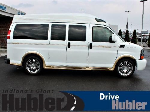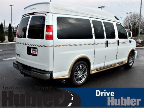 Navigation, Flex Fuel, Remote Engine Start, Onboard Communications System, Rear Air, REAR VISION CAMERA, PREFERRED EQUIPMENT GROUP, Trailer Hitch. Summit White exterior and Trim, Custom Vinyl, Neutral interior, Upfitter trim CLICK NOW!======KEY FEATURES INCLUDE: Rear Air, Flex Fuel, Onboard Communications System, Remote Engine Start Privacy Glass, Keyless Entry, Electronic Stability Control, Heated Mirrors, 4-Wheel ABS. ======OPTION PACKAGES: AUDIO SYSTEM WITH NAVIGATION, AM/FM STEREO WITH MP3 COMPATIBLE CD/DVD PLAYER AND NAVIGATION, USB PORT seek-and-scan, digital clock, auto-tone control, Radio Data System (RDS), speed-compensated volume and TheftLock, TRAILERING EQUIPMENT, HEAVY-DUTY includes trailering hitch platform and 7-pin sealed connector (Includes (UY7) 7-lead trailer wiring harness.), REAR VISION CAMERA display integrated into rearview mirror (Integrated into navigation screen when (UYS) AM/FM stereo with MP3 compatible CD/DVD player and navigation is ordered.), SEAT ADJUSTER, DRIVER 6-WAY POWER (RISER ONLY), PREFERRED EQUIPMENT GROUP includes Standard Equipment. Upfitter with Summit White exterior and Trim, Custom Vinyl, Neutral interior features a 8 Cylinder Engine with 310 HP at 5200 RPM*. ======VEHICLE REVIEWS: KBB.com's review says If you're looking for a time-tested van that can handle almost any task in any weather, the 2014 Chevy Express Van is for you.. ======VISIT US TODAY: After more than 50 years in business, The Hubler Auto Group, through the power of ten central Indiana locations, has literally sold hundreds of thousands of vehicles and is one of the oldest and most prolific auto dealers in the State employing 550 people. The Hubler Auto Group can claim the title for selling more G.M. vehicles in the State of Indiana than any other dealer or dealer group Horsepower calculations based on trim engine configuration. Please confirm the accuracy of the included equipment by calling us prior to purchase. FREE Window Tint OR Unlimited 1 Year CarWash Pass with any vehicle purchase.* Central Indiana's LARGEST Chevy Dealer! We have great finance rates and rebate incentives available on our new vehicle inventory! Call us today for the details at 866-797-3549. Our Internet Customer Care Team is on-hand to take your call! *Some restrictions may apply. See dealer for details.