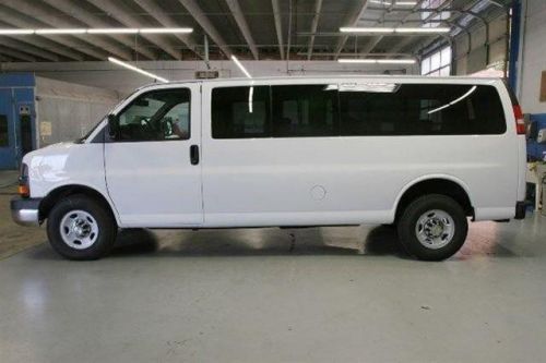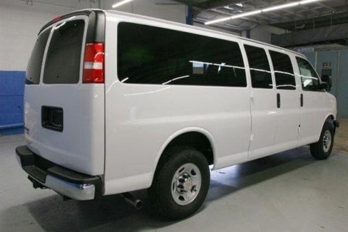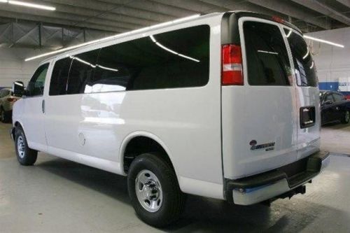 This 2014 Chevrolet Express Passenger 3dr RWD 3500 155 LT with 1LT Van features a 6.0L 8 CYLINDER 8cyl Flex Fuel engine. It is equipped with a 6 Speed Automatic transmission. The vehicle is Summit White with a Medium Pewter interior. It is offered with a full factory warranty. - Air Conditioning, Cruise Control, Tinted Windows, Power Windows, Power Door Locks, Rear Air Conditioning, Tachometer, Tilt Steering Wheel, Side Airbags, Keyless Entry, Security System, Traction Control, Dynamic Stability, Rear Defogger, Heavy-Duty, Electronically Controlled With OD And Towith Haul Mode And Internal Oil Cooler (Standard On Cg23406, Cg33406 Or Cg33706 Models. Includes External Engine Oil Cooler. Reference The Engine/Axle Page For Availability.), vortec 6.0l v8 sfi flexfuel, Rear-wheel drive, Seating, Console, Cup holders, Power outlets 2 auxiliary on engine console cover with covers, Floor covering, Instrumentation, Driver Information Center includes fuel range, Oil life monitor, Warning tones, Compass, Convenience Package, Convenience Package, Door locks, Heater, Mirror, Headliner, Visors, Assist handle, Lighting, Lighting, medium pewter, Tires, Tires, Tire, Wheel trim, Body, Bumpers, Grille, Headlamps, Mirrors, Glass, Glass, Glass, Glass, Glass, Wipers, License plate kit, Door, Rear axle, Towith haul mode selector, Battery, Alternator, Frame, Suspension, Suspension, GVWR, Steering, Brakes, Fuel tank capacity, Exhaust, StabiliTrak, Door beams, Daytime Running Lamps, Air bags, Air bags, OnStar, Child seat anchors all three passenger rear seats have four anchors and two tethers,Assist handle front passenger,Console deluxe with swing-out storage bin,Cup holders 3 on the engine console cover,Floor covering full-floor color-keyed carpeting with front and rear rubberized vinyl floor mats,Headliner cloth,Heater rear auxiliary,Lighting auxiliary with reading and underhood lights,Lighting interior with 2 dome lights defeat switch and door handle-activated switches,medium pewt ... Parks Chevy has a longstanding history of making it a pleasant process when buying or servicing your new Chevrolet, offering you guaranteed credit approval and the Triad's best selection... Get the vehicle you want for the payment you need. Minutes from Winston-Salem or Greensboro, Come see why The Little Cheeper Dealer is Worth The Drive!