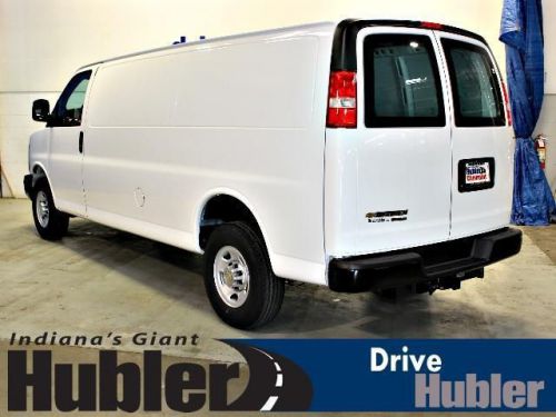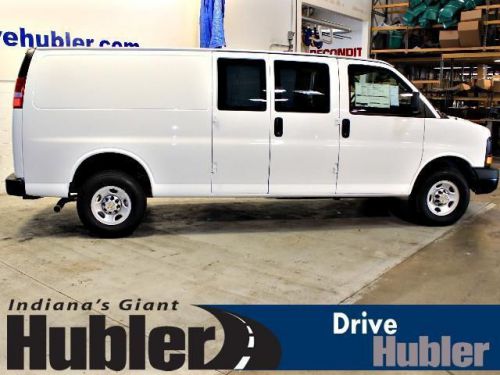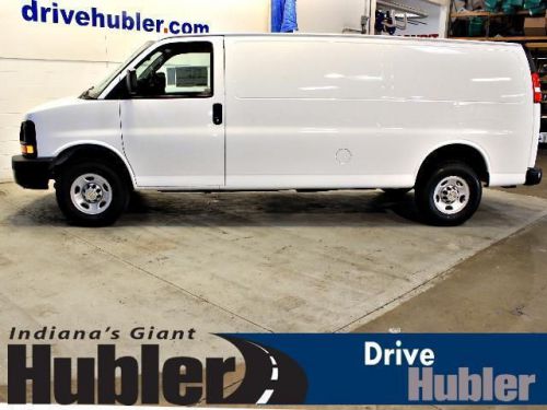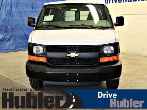 Express Cargo Van trim, Summit White exterior and Trim, Vinyl, Medium Pewter interior. ENGINE, VORTEC 6.0L V8 SFI FLEXFUEL, DIFFERENTIAL, HEAVY-DUTY LOCKING REAR... TRAILERING EQUIPMENT, HEAVY-DUTY. SEE MORE!======KEY FEATURES INCLUDE: . Stability Control, Bucket Seats, Vinyl Seats, ABS, Tire Pressure Monitor. ======OPTION PACKAGES: ENGINE, VORTEC 6.0L V8 SFI FLEXFUEL (342 hp [255.0 kW] @ 5400 rpm, 373 lb-ft of torque [503.6 N-m] @ 4400 rpm) (Includes external engine oil cooler and (V14) transmission oil cooler. DIFFERENTIAL, HEAVY-DUTY LOCKING REAR, TRAILERING EQUIPMENT, HEAVY-DUTY includes trailering hitch platform and 7-pin sealed connector (Includes (UY7) 7-lead trailer wiring harness. Express Cargo Van with Summit White exterior and Trim, Vinyl, Medium Pewter interior features a 8 Cylinder Engine with 342 HP at 5400 RPM*. ======EXPERTS ARE SAYING: KBB.com's review says If you're looking for a time-tested van that can handle almost any task in any weather, the 2014 Chevy Express Van is for you.. ======MORE ABOUT US: After more than 50 years in business, The Hubler Auto Group, through the power of ten central Indiana locations, has literally sold hundreds of thousands of vehicles and is one of the oldest and most prolific auto dealers in the State employing 550 people. The Hubler Auto Group can claim the title for selling more G.M. vehicles in the State of Indiana than any other dealer or dealer group, and has earned the right to brag of having the largest and most loyal customer Horsepower calculations based on trim engine configuration. Please confirm the accuracy of the included equipment by calling us prior to purchase. FREE Window Tint OR Unlimited 1 Year CarWash Pass with any vehicle purchase.* Central Indiana's LARGEST Chevy Dealer! We have great finance rates and rebate incentives available on our new vehicle inventory! Call us today for the details at 866-797-3549. Our Internet Customer Care Team is on-hand to take your call! *Some restrictions may apply. See dealer for details.