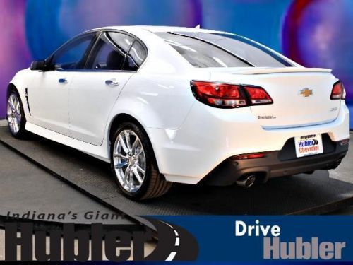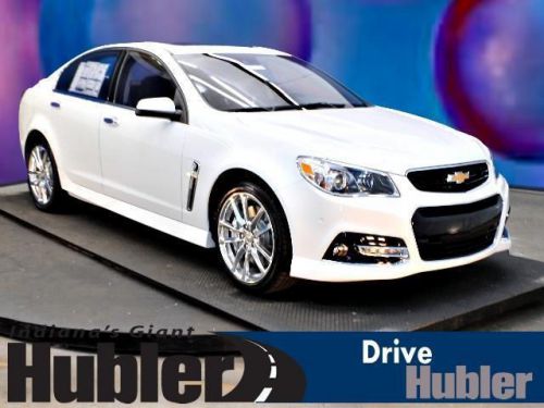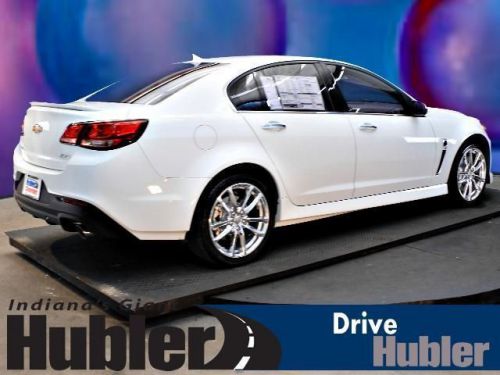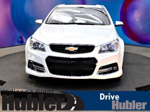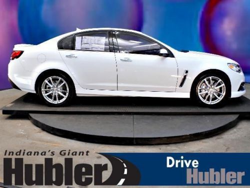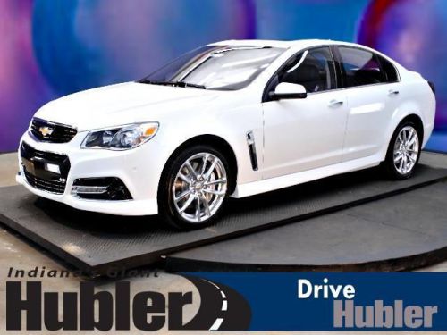 Navigation, Heated/Cooled Seats, Sunroof, iPod/MP3 Input, Onboard Communications System, Alloy Wheels, SUNROOF, POWER WITH EXPRESS OPEN. Heron White exterior and Seats, Jet Black Leather Appointed interior, SS Sedan trim SEE MORE!======KEY FEATURES INCLUDE: Navigation, Heated Driver Seat, Cooled Driver Seat, Back-Up Camera, Premium Sound System, Satellite Radio, iPod/MP3 Input, Onboard Communications System, Aluminum Wheels, Remote Engine Start, Dual Zone A/C, Heated Seats, Heated/Cooled Seats. Rear Spoiler, MP3 Player, Keyless Entry, Child Safety Locks, Steering Wheel Controls. ======OPTION PACKAGES: SUNROOF, POWER WITH EXPRESS OPEN, TRANSMISSION, 6-SPEED AUTOMATIC WITH TAPSHIFT (STD). SS Sedan with Heron White exterior and Seats, Jet Black Leather Appointed interior features a 8 Cylinder Engine with 415 HP at 5900 RPM*. ======EXPERTS ARE SAYING: Edmunds.com's review says The interior of the Chevy SS sedan exudes quality as well as quantity. Leather seating comes standard, and it's set off with high-quality stitching and simulated suede details. Predictably, the accommodations are spacious. . ======OUR OFFERINGS: After more than 50 years in business, The Hubler Auto Group, through the power of ten central Indiana locations, has literally sold hundreds of thousands of vehicles and is one of the oldest and most prolific auto dealers in the State employing 550 people. The Hubler Auto Group can claim the title for selling more G.M. vehicles in the State of Indiana than any other dealer or dealer group, and has earned the right to brag of having the largest and most loyal customer Horsepower calculations based on trim engine configuration. Please confirm the accuracy of the included equipment by calling us prior to purchase. FREE Window Tint OR Unlimited 1 Year CarWash Pass with any vehicle purchase.* Central Indiana's LARGEST Chevy Dealer! We have great finance rates and rebate incentives available on our new vehicle inventory! Call us today for the details at 866-797-3549. Our Internet Customer Care Team is on-hand to take your call! *Some restrictions may apply. See dealer for details.