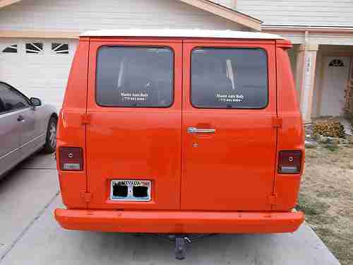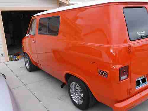 1976 Chevrolet g10 sport van. recent restoration. rebuilt 383 stroker very low miles. 76 orange with pear white top. low reserve!!!!!! lowered, new interior, new seats, custom steering wheel, and new transmission. Factory options included are Air Conditioning, Power Steering, Power Brakes with Front Disc, Front Stabilizer Bar, Cigarette Lighter,Tinted Glass. Chrome Grill, I have over $20,000.00 invested in this Van, my loss is your gain. custom painted bumpers It also has new shocks, brakes, hoses, belts and a fresh tune up. runs and drives great.