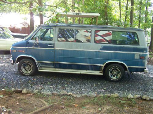 1979 CHEVY G20 BEAUVILLE VAN .RUNS GREAT COULD USE SMALL TUNE-UP. TRANNY SLIPS IN 2ND GEAR I THINK,ALREADY REPLACED IT ONE TIME FORMER TRANNY WORKED IN REVERSE ONLY. GOES UP AND DOWN THE ROAD NOW,BUT FLUID DISSAPPEARS NOT LEAKING AS I KNOW OF.NEW CATS AND EXHAUST,WIPERS ,VAVLE COVERS,BATTERY,HEADLIGHTS AND OIL CHANGE. NICE AM-FM RADIO PLAYS AWESOME TRAILER HITCH.GET THE BUGS OUT AND YOU WOULD HAVE A GREAT PASSENGER OR CARGO HAULER.LOW PRICED FOR THE YEAR .NICE SET OF MAG WHEELS ALSO.