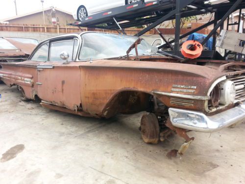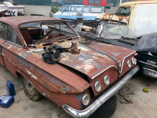 THIS AUCTION IS FOR ALL 4 CARS 2 1960 IMPALAS 1 CONVERTIBLE AND 1 BUBBLE TOP,2 1961 IMPALA BUBBLE TOPS THESE CARS NEED TOTAL RESTORATION FLOORS ROCKERS TRUNKS SOME OR ALL WINDOWS THE RED 61 BUBBLE IS THE BEST OF ALL OF THEM BUT STILL NEEDS PARTIAL FLOORS AND TRUNK IT DOES HAVE ORIGINAL 283 MOTOR IT DOES HAVE A TRANNY BUT NOT SURE IF ITS ORIGINAL CAR DOES APPEAR TO HAVE A CLUTCH PEDAL AND A WHOLE ON THE FLOOR BUT LOOKS LIKE IT WAS CONVERTED AT ONE TIME TO AUTOMATIC CUZ IT HAS SHIFTER ON COLUMN IT HAS A CENTER CONSOLE COULD BE ORIGINAL SS NOT SURE THE 60 CONVERTIBLE NEEDS ALOT OF TLC AS YOU CAN SEE FROM PICS IT DOES HAVE MOST OF CHROME AND STAINLESS FRONT AND BACK SEATS DASH IS ALMOST COMPLETE SEE PICS FOR MORE INFO RED 60 BUBBLE TOP NEEDS HELP HAS LOTS OF CHROME INTERIOR IS ALL COMPLETE DASH IS ALL THERE EVEN ORIGINAL RADIO COULD BE A FIXER OR USED FOR PARTS WHITE 61 WILL BE A PARTS CAR HAS A RIGHT DOOR TO COMPLETE RED 61 GOOD FRONT BUMPER HAS SOME CHROME OR STAINLESS FRAME IS GOOD I GOT TITLES FOR 3 CARS 1960 CONVERTIBLE,AND BOTH 1961 IMPALAS THE RED 60 BUBBLE TOP WILL BE SOLD WITH BILL OF SALE WINNING BIDDER TO PAY DEPOSIT OF $1000 WITHIN 72HRS AFTER AUCTION ENDS THIS AUCTION IS FOR ALL 4 CARS FORKLIFT IS AVAI.FOR LOADING CARS ONTO A CAR CARRIER IF YOU NEED HELP TO SHIP THESE CARS ANYWHERE IN THE U.S I CAN HELP OR YOU CAN SHOP AROUND PAYMENT IN FULL IS REQUIRED WITHIN 5DAYS BY WIRE TRANSFER OR CASH ONLY I WILL NOT SELL ONLY 1 CAR THIS IS A PACKAGE DEAL BUY HERE AND SAVE ANY QUESTIONS YOU CAN CALL OR TEXT MARIO 310 933-2302 |