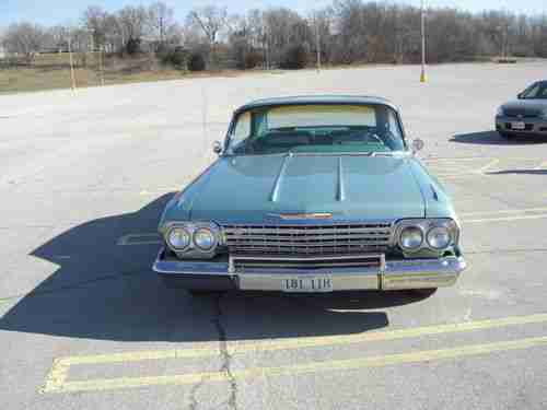 1962 CHEVROLET SS IMPALA / SEA FOAM GREEN / GREEN AND WHITE INTERIOR / PS WITH FRONT DISC BRAKES / VERY VERY FINE CONDITION / PICS TELL THE TALE BUT IF YOU HAVE QUESTIONS, EMAIL OR CALL Mac at 816-813-0220 / NO RUST / FRAME OFF RESTORATION / RESERVE IS LOWER THAN BUY IT NOW SO BID TO OWN / THIS CAR WILL NEVER NEED TO BE FRAME OFF RESTORED AGAIN / IT IS REALLY NICE AND WILL NEED THE NORMAL TWEAKING THRU THE YEARS BUT THE MAJOR STUFF IS DONE DONE DONE