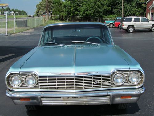 This '64 Chevy sedan is a real survivor. It has been owned by the same family since new. The odometer is showing 82,000+ miles. All books and records are included. The car has a 283 engine with an automatic transmission. The original radio still works. You can drive this car anywhere.