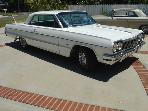 For sale i got an clean original 1964 Chevy Impala coupe with a POWER SEATS which is a very rare option for this year impala with air conditioning. This car is in great condition, paint is very nice, and body is straight, original 283 engine powerglide transmission, power steering. has somekind of Rally rims on it. Car runs good. Interior is in excellent condition like brand new. Everything on this car works all the interior lights, turn signals, dash guages, headlights, everything, new brakes..You just dont find them like this anymore undercarriage is super clean and 100% rust free no rust ANYWHERE on this car. Car is being sold As-Is with no warranty and is the buyers responsibilty to check car prior to bidding. Car is Located in Los Angeles and has a clean title. I have sold a couple cars to overseas buyers and out of state buyers in the past and can offer to deliver the car to any of the shipping companys here in southern california. Most of my cars end up selling before the auctions even end so i have the right to end the auction early if the car sells locally. IF YOU HAVE ANY QUESTIONS YOU CAN CALL ME ON MY CELL AT 714-401-3854 thanks