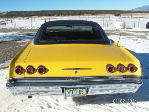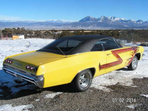 You are bidding on a all numbers matching 1965 Chevy Super Sport Impala,it has a 327 full roller small block Chevy rebuilt 10,000 miles ago, 4 speed manual trans. has a 12 bolt posi rear end, 1400 watt Sirius satellite radio. Every thing on car was done right and drives very well, car is beautiful inside and out and can be driven any were. More info available upon request.