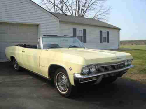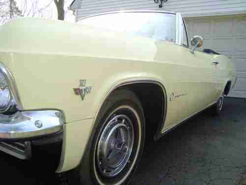 *********************************************************************** NO RESERVE 10 DAY AUCTION FIRST OFFER OVER $10,000 BUYS THE CAR************************************************************ 1965 IMPALA CONVERTIBLE. SAME OWNER OVER 30 YEARS. ALWAYS GARAGED AND PAMPERED BY LOCAL MECHANIC. THIS CAR IS 100% ALL ORIGINAL(EXCEPT FOR 1 REPAINT IN 1985 AND STILL LOOKS GREAT!) AND ALL NUMBERS MATCH / ORIGINAL 327 V-8, AUTOMATIC TRANSMISSION , AND 12 BOLT REAR END. THE CAR STARTS, IDLES, RUNS, SHIFTS AND DRIVES PERFECT! NO LEAKS , NO SMOKE , NO TICKS, PERFECT RUNNING CAR WITH PLENTY OF POWER. THE TRANSMISSION WAS HAD A PROFESSIONAL REBUILD ABOUT 20K AGO AND SHITS PERFECTLY WITH NO LEAKS. EVERYTHING WORKS(LIGHTS, HIGH-BEAMS, RADIO, HORN HEAT, INTERIOR LIGHTS/TRUNK LIGHT). THE CAR WAS TREATED TO A REPAINT IN 1985 BECAUSE THE WIFE WANTED THE CAR TO BE THE SAME COLOR AS THE SAME EXACT CAR SHE OWNED WHEN SHE WAS IN HIGH SCHOOL(ORIGINAL COLOR IS BEAUTIFUL ARTESIAN TURQUOISE AS ON COWL TAG). IT WAS NEVER IN AN ACCIDENT AND ALL THE BODY LINES ARE PERFECT. NO RUST ON BOTTOM SEAM OF DOORS THEY OPEN AND CLOSE PERFECTLY WITH NO SAGGING. DOOR LOCKS WORK AS WELL, ALL GM ORIGINAL FACTORY SHEET-METAL. THE MOLDINGS INCLUDING THE PNICH MOLDINGS AROUND THE REAR TRUNK DECK AND DOORS ARE IN PERFECT CONDITION. THE POWER CONVERTIBLE TOP IS THE ORIGINAL TOP FROM 1965(DOES NOT LEAK WATER, BUT WILL NEED REPLACING/AND FLUID BLEEDING TO MAKE CAR PERFECT). BRAND NEW PARTS INSTALLED BY LOCAL MECHANIC INCLUDE: FULL BRAND NEW DUAL EXHAUST SYSTEM FROM FRONT TO BACK(ALL ORIGINAL STYLE), 4 NEW DUNLOP RADIAL TIRES, 4 NEW BRAKES, NEW GM STARTER, NEW BRAKE POWER BOOSTER, NEW 4BBL CARB. THE FACTORY OPTIONS INCLUDE POWER TOP, POWER BRAKES, POWER STEERING, PARADE BOOT(GM ORG), TRUNK MAT AND JACK SYSTEM. THE BODY AND DRIVE LINE ARE SOLID. I WILL LET THE BEAUTIFUL PICTURES SPEAK FOR THEMSELVES(THE PAINT SHINES BEAUTIFULLY, NO DENTS, NO BUBBLING). FINDING AND ALL ORIGINAL 1965 IMPALA CONVERTIBLE IS NOT EASY ESPECIALLY ONE THIS NICE AND ORIGINAL WITH THE 327 FACTORY OPTION AND 12 BOLT REAR END. ALL ARE WELCOME TO COME INSPECT THE CAR PRIOR TO AUCTION END. THE CAR IS SOLD IN USED AS IS CONDITION. AS WITH ANY CLASSIC 48 YEAR OLD CAR BEFORE DRIVING YOU SHOULD HAVE YOUR MECHANIC DO A COMPLETE SAFETY INSPECTION PRIOR TO USE. I HAVE CLEAN TITLE READY FOR TRANSFER TO THE NEW OWNER. PLEASE CALL RATHER THAN EMAIL WHEN POSSIBLE. ALL INTERNATIONAL BUYERS ARE WELCOME. I WILL GLADLY ASSIST WITH SHIPPING. SHIPPING COSTS AND ARRANGEMENTS ARE THE BUYERS RESPONSIBILITY. $2500 NON-REFUNDABLE DEPOSIT DUE WITHIN 48HRS AND FULL PAYMENT ALSO NON-REFUNDABLE IN 5 DAYS AFTER AUCTION ENDS.PLEASE CALL WITH ANY QUESTIONS. CAR IS LOCATED IN NEW YORK - SUFFOLK COUNTY LONG ISLAND ZIP 11764 AND WILL SHIP FROM SAME LOCATION.***************************************************** NO RESERVE 10 DAY AUCTION FIRST OFFER OVER $10,000 BUYS THE CAR! *****************************************************. I HOLD OPTION TO END AUCTION EARLY AS CAR IS OFFERED FOR SALE LOCALLY. THANK YOU. 631-943-9107