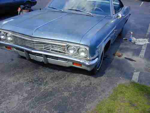1966 Impala project car, Has original 327 4 barrel with factory air , tinted glass and power brakes. Car runs and yard drives, needs a full restoration, has rust free doors, hood and trunk lid, floors and rockers also not rusted.Car has not been tampered with or cut up anywhere, it is as it was in 1966. The floors just show surface rust from wet carpets that have been removed. Trans is a two speed auto, frame rail on drivers side has rot in section under drivers door. Again, this is a project car that needs to be trailered away and restored, or part it out, will bew sold as is where is , final sale, no warranty, no guarantees. Car is in Norwalk CT 06851. please email any questions that you may have, or to schedule a visit to inspect the car in person. Thanks
