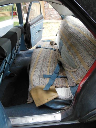 Interior is mostly original except for a Panasonic stereo and Kenwood speakers. Seats are pretty torn up, but front bench has a nice seat cover, and I have a matching one for the back bench that comes with the car.