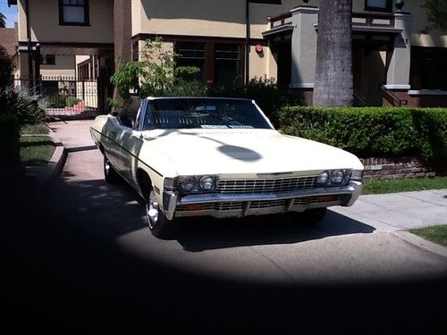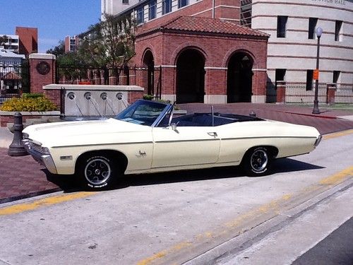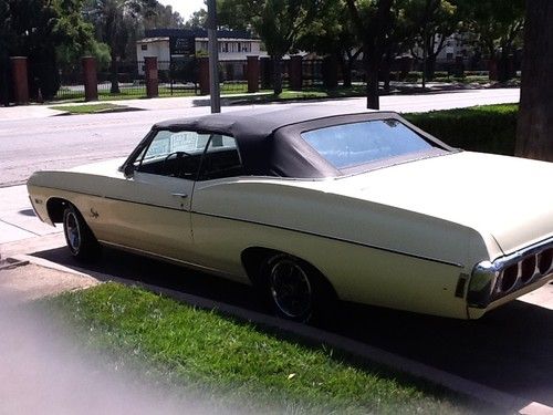 1968 Chevrolet Impala Convertible, 327 engine, Decent interior, Power Top, new tires some area rust in trunk pan and lower fenders.