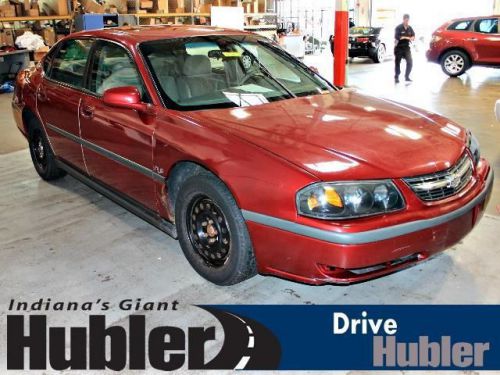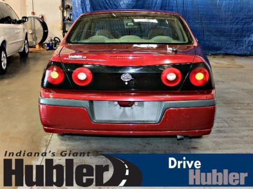 Victory Red exterior and Neutral interior, Base trim. Reliable. PRICE DROP FROM $3,997, PRICED TO MOVE $1,400 below NADA Retail!, FUEL EFFICIENT 32 MPG Hwy/21 MPG City! Dual Zone A/C. 5 Star Driver Front Crash Rating. CLICK NOW!======KEY FEATURES INCLUDE: Dual Zone A/C Onboard Communications System, Keyless Entry, Remote Trunk Release, 4-Wheel Disc Brakes, Vehicle Anti-Theft System. Base with Victory Red exterior and Neutral interior features a V6 Cylinder Engine with 180 HP at 5200 RPM*. ======EXPERTS ARE SAYING: 5 Star Driver Front Crash Rating. 4 Star Driver Side Crash Rating. Great Gas Mileage: 32 MPG Hwy. ======AFFORDABLE TO OWN: Reduced from $3, 997. This Impala is priced $1, 400 below NADA Retail. ======MORE ABOUT US: After more than 50 years in business, The Hubler Auto Group, through the power of ten central Indiana locations, has literally sold hundreds of thousands of vehicles and is one of the oldest and most prolific auto dealers in the State employing 550 people. The Hubler Auto Group can claim the title for selling more G.M. vehicles in the State of Indiana than any other dealer or dealer group, and has earned the right to brag of having the largest and most loyal customer Pricing analysis performed on 5/16/2014. Horsepower calculations based on trim engine configuration. Fuel economy calculations based on original manufacturer data for trim engine configuration. Please confirm the accuracy of the included equipment by calling us prior to purchase.