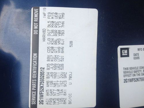 VIN: 2G1WF52K759328512 Model: 1WF19-2005 IMPALA SEDAN