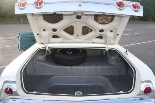 Up for auction is my 1962 Impala SS. This car is a true, numbers matching SS. The exterior trim code is 936 Ermine White. The interior trim code is 845 Aqua Bucket Seat. The first 6 digits of the vin, 21847L, means this car is a true 1962 SS Hard Top built in the Los Angeles CA factory. This car has been rebuilt mechanically and modified for more driver comfort and drivability. The original 327 has been rebuilt completely using 210 hardened valves so you can run unleaded fuel. It also has a Comp Cams mild cam "12-211-2" with a .470 valve lift. The carb has been rebuilt as well. The radiator is a new custom built aluminum radiator from CG&J in Gladsden AL. The transmission is a freshly rebuilt 700r connected to a new 3.73 rear end. The brakes are new all around with front disc brakes from Hubbard's. The steering rack has been replaced with a CPP 500 p/s box and new intermediate shaft. Springs and shocks are MOOG with all new bushings front and rear. The front A-arms have also been replaced with CPP tubular A-arms for better handling. The car has a 1" drop and has a great stance. The car is a factory A/C car and I have upgraded to a Vintage Air Gen IV system. It's ice cold and the fan puts out far more air than the original. The gauges are upgraded versions from Classic Instruments. They are the "G" series and match the car perfectly. The wheels are American Racing Torque Thrust. They are Billet and are 18" front/20" rear. Tires are Nitto 235/40/R18 in the front and 275/35/R20 in the rear. All work on the car was completed in November 2013. Since the rebuild I have put just under 2,000 miles on the car. Everything has been dialed in and it runs, drives, turns, and stops like a new car. The steering has no play and the front shows very little body roll when cornering. Cosmetically, the paint is in fair condition and appears to be mostly original. There is lacquer checking on every panel except the left rear quarter panel. The paint is still glossy though and shows well. It has a great patina to it and isn't noticeable until you get close to the car. The body is rust free and shows as a California-built car that spent most of its life in a dry climate. The bumpers are original and have some pitting and a couple small dings. The emblems, mirrors, doors handles, and window chrome look new. The glass is the original tinted glass to the car and is also in great shape. On the interior- the seats, carpet, door panels, rear panels, parcel shelf, console, steering wheel, and knobs are all restored or new. The headliner is original and is the "star" pattern. The dash is in exception shape and has a deep shine to it. You can choose to repaint it or keep it in its patina. I would encourage any serious buyer to come see/drive this car. You will not be disappointed. I will consider swapping for a Corvette. Corvette. If you have any questions or pic requests please don't hesitate to ask. I can email pictures of the complete rebuild. Buyer will get a photo album of the restoration and a binder with all receipts.THIS CAR WILL BE AT THE ACCA AUTOFAIR AT CHARLOTTE MOTOR SPEEDWAY SEPT. 18-21. Call Seth at 704-651-5349. Please leave a message, no texts. |