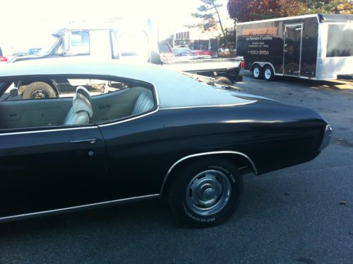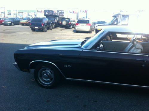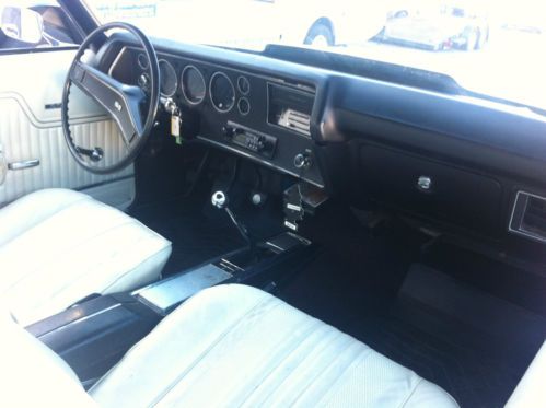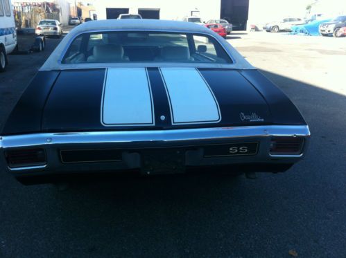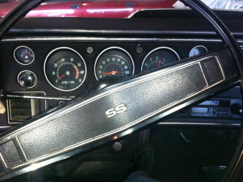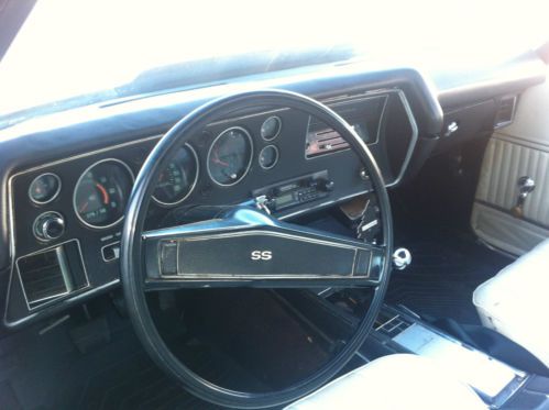 WAS GOING TO DO FULL RESTORATION BUT NO TIME CAR WAS ORGINALLY FATHOM BLUE BUT NOW IT HAS A AVERAGE DRIVER QUALITY PAINT JOB CAR IS EQUIPPED WITH ITS MATCHING NUMBERS 350 MOTOR AND 4 SPEED TRANNY LOOKS LIKE THE MOTOR WAS REBUILT IT RUNS AND SHIFTS GREAT HAS A 12 BOLT REAREND IN ALSO WITH 353 GEARS CAR IS SITTING ON RALLYS AND GOOD TIRES CAR WAS BORN WITH WHITE BUCKET SEAT AND CONSOLE INTERIOR ALSO WHITE VINYL TOP ALSO HAS THE SS DASH (TACH DOESNT WORK) HAS DUALS EXHAUST ,REAR FLOORS ARE SOFT AND BODY HAS SOME LITE RUST NOTHING MAJOR CAR IS STRAIGHT AND DRIVES GREAT TRUNK IS SOLID,LOWER LOWER QUARTERS SHOWING SOME RUST GLASS IS IN GREAT SHAPE WINDOW GO UP AND DOWN HAS POWER STEERING AND POWER DISC BRAKES AND TILT WHEEL CAR IS A GREAT DRIVER AS SHE SITS ANY QUESTIONS CALL ME 631 457-0716 MIKE CAR IS BEING AS IS WHERE IS COME DOWN AND TAKE A LOOK NO EMAILS NO SCAMMERS NO TIRE KICKERS |