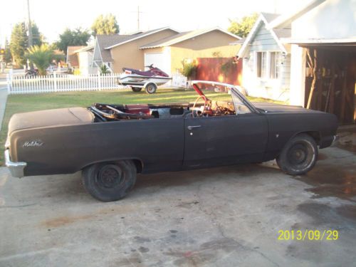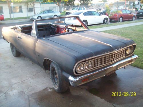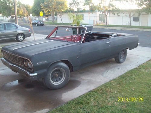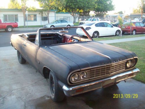 I'm very pleased to bring to the market place this 1964 Chevrolet Chevelle Malibu convertible. This is an original matching #283 with automatic 2 speed power glide and 10-bolt rear end. This is a project car and is being sold as is. You are encouraged to come and inspect the car before you bid. I will be happy to arrange affordable shipping to your door. Thank you and good luck bidding. Call or email for info (714) 872-7792