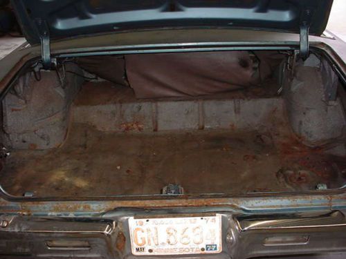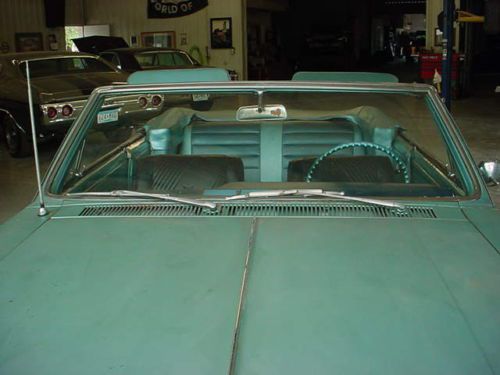 MAKE NO MISTAKE, THIS CAR NEEDS PART OF A REAR FRAME SECTION ! ! ! Very low mileage car with only 49,905 miles.With power steering. I belive it to be actual since it has been inside storage since 1977 (37) years. It has the usual rust in the 1/4rs and lower front fenders. The power convertible top works great, all the windows go up and down easy, the windshield is fine. I have not tried to start is but it turns over fine. It dose not have the right front seat, they are Pontiac buckets i think from a 65 GTO?. The back seat and side panels need nothing. (SEE THE PICTURES) The original jack is there and the tie down.Ther original convertible top boot is also in very good condition. This car will need sections of the floor pan also. Call LeRoy Nelson with any ? ? ? 612-210-0350