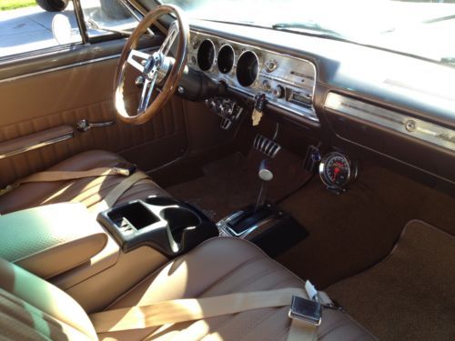 350 (.30 over). Edellbrock cam ,edellbrock intake and 600 carb, headers, iron heads.,200r4 trans (grand national), B&M quiclsilver shifter, Custom autosound RRadio w/mp3 plug in, 67 chevelle buckets with center console. tan upholstery, power windows (front) power steering (cpp), ididit steering column, grant steering wheel, 18" coy wheels nexen tires (Staggered), hotchkis springs (1.5 inch lowered),kyb shocks, sway bars front and rear., black and yellow 1960's series license plates