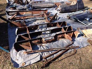 This auction is for my 1965 El Camino hoard. I purchased both these vehicles and parts along the way with the hope of restoring at least one. Needless to say it was an on again off again endeavor that isn't going to happen anytime soon so it's time to part with it. The white car has a 283 with a 2 speed powerglide. It runs abnd drives but but I've never had it on the road. There is body work and frame work that were done to the car by the previous owner. The only thing I did was put white paint on the car to try and make it look a little more presentable as I was making it a driver for the time being. Anything not on the car is included in the pile of parts. Headlights are working but the passenger side tail light is not. All the chrome bed trim has dings and were painted silver. The second car has a solid frame but as you can see in the photos almost all the body panels need attention. The 350 in it runs great. This was another car that I did not put on the road. It has only been moved around the yard. I have several NOS parts like the fender emblems and passenger side rocker molding still in the wrappers. I have reproduction weather striping, horn button, misc. clips, hood trim, and a few others. There are also there are many additional parts taken from two other parts cars along the way. I invite anyone to come and look at the cars and parts prior to bidding. I will be able to store the vehicles for up to 1 month at no additional charge, however the must be paid for in full. I AM NOT INTERESTED IN ANY TRADES. I have additional photos I can send or will send any photos you would like. You can message me or call me (732)580-4281 |