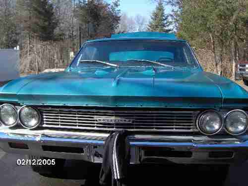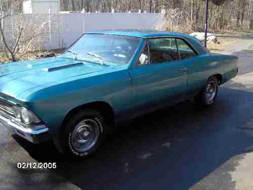 1966 CHEVY CHEVELLE MALIBU 2 DOOR COUPE ORG 283 CONVERTED TO A 4 SPEED 12 BOLT REAR END.I DRIVE THE CAR ON THE WEEK END AND IT DRIVES GOOD AND RUNS STRONG.IT IS REGISTERED IN CT,THEY DO NOT REQUIRE A TITLE FOR A CAR THAT IS THIS OLD.SO THE CAR WILL BE SOLD WITH BILL OF SALE OFF OF THE REGISTRATION.THE CAR IS NOT A SHOW CAR IT NEED COSMETICS I HAVE MOST OF TRIM IN TRUNK.THE PAINT IS A 10 FOOTER BUT THE CAR IS SOLID.THE ONLY RUST IS SURFACE AND IN THE TRUNK FLOOR PITTING.IT HAS NEW HOLLY 650 CARB,INTAKE,EXAHAUST,BUMPERS,HOOD,ALT,VOLT REG REAR CHEATERS ON QUARTERS, RUNS AND DRIVES GOOD. THE CLUTCH AND BRAKES GRAB GOOD.YOU WILL NEED A LEAST 15 STARS TO BID ON THIS CAR BECAUSE OF PAST DEAD BEATS.I WILL NEED A $500 DOLLAR DEPOSIT WITHIN 24 HOURS OF PURCHASE.IF YOU DONT HAVE THE MONEY PLEASE DONT BID ON CAR.THE DATE ON THE CAMERA IS WRONG,THEY WERE TAKEN 5/13. IF YOU HAVE ANY QUESTIONS PLEASE LET ME KNOW.THE CAR IS FOR SALE IN OTHER PLACES SO I RESERVE THE RIGHT TO END AUCTION ANYTIME.THANKS