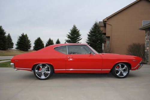 For sale is my 1969 Chevelle Resto Mod. This is a great driver car and will go anywhere you need it to. The motor and transmission only have around 1000 miles with fresh fluids in both, as well as the rear axle. Incredibly straight body with an excellent bright red paint job.