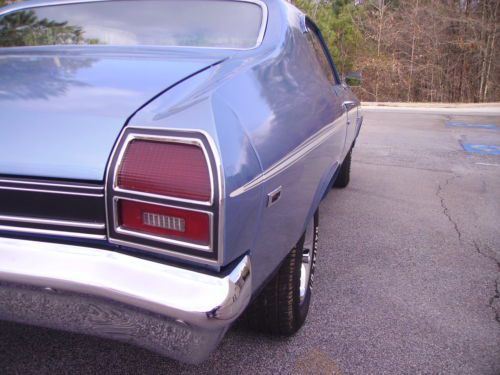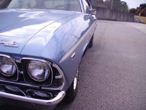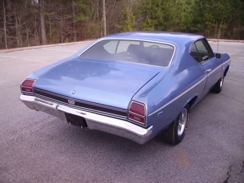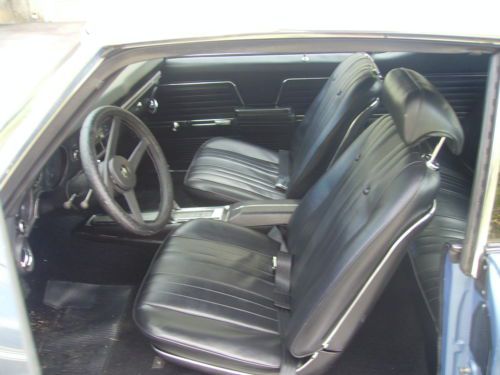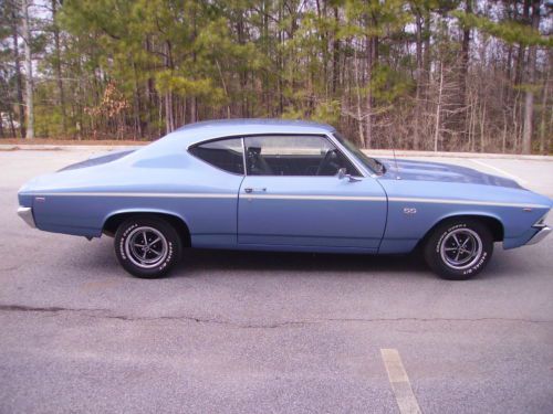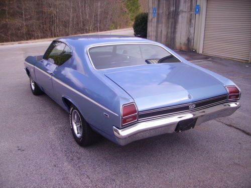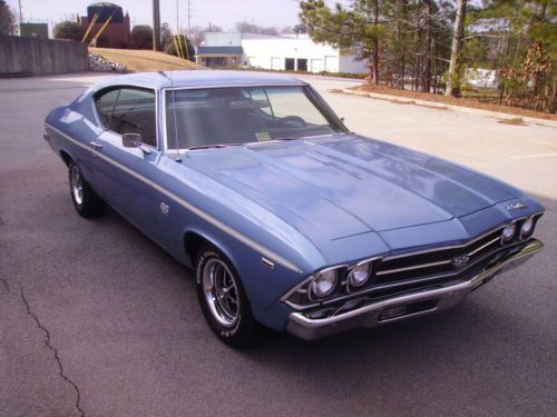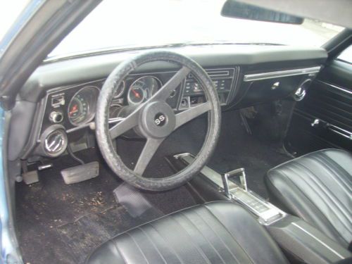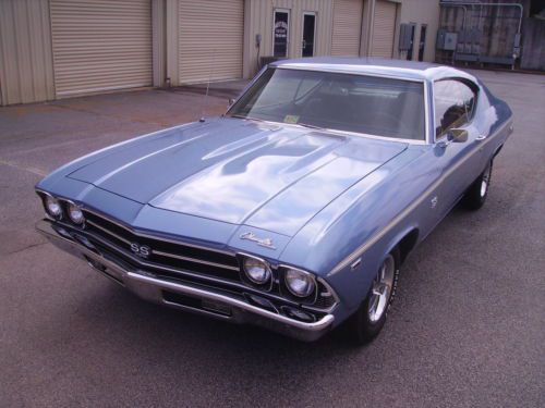 Just in is a nice looking 1969 Chevelle SS Clone with a STRONG running 454 BB Engine connected to a 400 Turbo Transmission. Car runs and drives out great and sounds good coming out of the Dual Exhaust. It is Marina Blue in color with real nice Black interior with bucket seats and center console with the horse shoe shifter. The paint I would say is a 7 out of 10. Not perfect but looks good. It is pretty fresh paint and a good wet sand and buff would make it come alive!! Has a couple scratches but no signs of rust. It has new 14" Cooper tires with the correct SS wheels. The rear is a 10 bolt and it has power steering and power disc brakes on the front. The Undercarriage is very solid. Floor pans, trunk braces etc.. all look good. It starts easy. Very good and very solid Chevelle. We bought the car out of North Carolina from a guy who works with Richard Petty Enterprises.