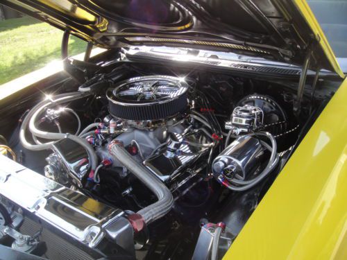 Let me start by saying that you are biding on a nice street clean car. The car is a 1970 chevelle with a 396. The motor is pushing about 500hp. It haves a forged crank, forged 7/16 rods, comp cams camshaft 550 lift intake and exhaust. Comp cams valve springs, comp cams pushrods and roller tip rockers, pro form gear drive , air gap intake manifold, quick fuel technology 750 double pumper , pertronix flame thrower distributor and coil. And with the nos sniper nitrous kit it's giving the hp an extra 100 to 150 more hp. The trans is a art Carr 400 tran with manual valve body , and b&m shifter. The rear end is a 12 bolt rear end with 3.73 gears and mechanical locker. The paints was done back in 2008 so it dose have some chips and scratches but it still looks nice for its age. The only bubbles it haves is on the bottom of the d. Side fender. The inter. Is nice with no issues. The wheels and tires are new with about 40 miles on them. For more info please email thank you and good luck. |