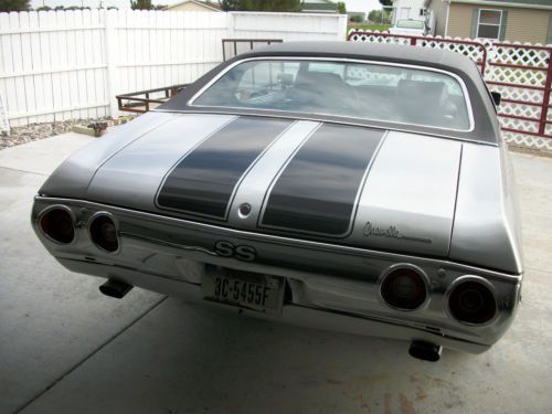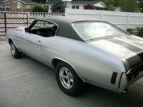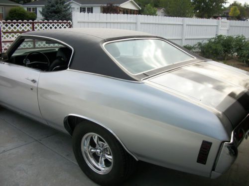 Up for bid is my Chevelle SS Clone. It has a '72 date 402 big block bored out 30 with everything new in the motor. It has been run long enough to break in the cam, and then the break in oil was drained and synthetic oil put in and driven 10 miles. Motor runs strong with great oil pressure. It has a 12-bolt with new 355 gears. Transmission is a turbo 400. This is not a show car, but a nice driver, as you do whatever you want to it. All lights and blinkers work. It has round gauges, but not the right wire harness. Power brakes work, but need some work done to them. The body work and the paint look okay, but are a 10-footer. The interior looks great with new seat covers. I am sure I am forgetting things, so email me legitimate questions, not stupid ones. I have a low reserve for the amount of money in this car. $500 deposit due within 24 hours of end of auction. Bank transfer or cash on balance. You are bidding to buy this car, not to look at it, so don't try to be a tire kicker. I have the clear title to this car. DO NOT ASK RESERVE. IF YOU HAVE LESS THAN 10 TRANSACTIONS EMAIL ME, OR I WILL CANCEL YOUR BID.