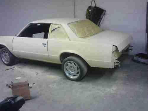 I have up for auction a 1981 chevrolet malibu sport coupe has had frame sand blasted and painted and all front suspension bushings and balljoints upper and lower replaced bushings are energy suspension polyurethane,moog balljoints and steering ,body has had a full floorpan installed,I have new fenders,the hood and radiator support ,header panel ,all wireing harness and lights ,also have the interior ,thae dash pad has a few cracks and the rear seat has some fadeing from sun,all door panels and rear panels are complete,all seat belts and carpet,glass is in good shape no cracks in windshield,have the fuel tank, and body has been stripped and preped for color have all the parts needed to finish this car,just needs engine and transmission and someone willing to take the time to finish this classic car.thanks for looking and good luck