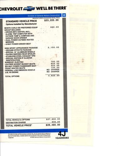 1987 monte carlo ss areo coupe 1 of 6,052(US $5,500.00)