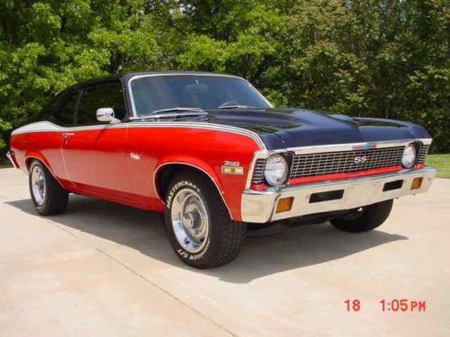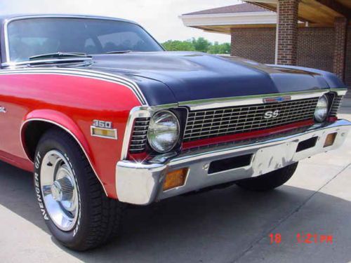 THIS IS A SHARP & CLEAN, RED & BLACK 1972 CHEVROLET NOVA 350 V-8 5-Spd. WITH SS TRIM. THIS NOVA WILL BE SOLD TO THE LAST ebay BIDDER FOR A VERY REASONABLE & FAIR PRICE. I OWN THIS 1972 CHEVROLET NOVA AND I DO HAVE A CLEAN AND CLEAR TITLE IN HAND. IF YOU ARE LOOKING FOR A SOLID & WELL CARED FOR NOVA THAT LOOKS NICE & RUNS GREAT, THEN LOOK NO FURTHER. THIS NOVA IS A GREAT DRIVER AND IT IS IN GOOD CONDITION! I AM CONFIDENT THAT THE WINNING BIDDER WILL LIKE AND BE HAPPY WITH THIS CAR. THIS IS A COMPLETE RUNNING & DRIVING 1972 CHEVY NOVA SS THAT LOOKS & SOUNDS GREAT!