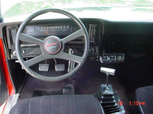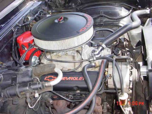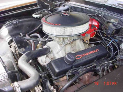 engine runs good and it always starts right up. It has a TREMEC 5-spd. Manual Transmission with a QUICK LADY Hydraulic Clutch & a Chrome Floor Shifter with a T-Handle. The clutch is in good condition. Has a EDELBROCK PERFORMER RPM Aluminum Intake, Holley Duel Line 4bbl. Carburetor, New HEI Distributor, ACCEL 8mm HI-TEMP-SUPER STOCK-SPIRAL CORE Spark Plug Wires with a pair of Wire Looms, Black-CHEVROLET Valve Covers with matching Air Cleaner. Air Filter, Fuel Filter & Spark Plugs are New. It has Cast Iron GM-Exhaust Manifolds with a True Duel Exhaust System with a pair of FLOW-MASTER Mufflers that are ran correctly out the rear and exit behind both rear tires. The Engine and the Exhaust System Sound Very Nice! It has Power Steering & the Brakes are New. It was originally equipped with A/C from the factory, the compressor is removed. It has a nice set of 15" Steel GM-RALLY Wheels with DERBY Center Caps and Trim Rings. The tires are in excellent, like new condition. It has a pair of 235/60/15-MASTERCRAFT AVENGER G/T Raised White Lettered Radial tires on the front and a pair of 245/60/15-HERCULES H/P 4000 Raised White Lettered Radial tires on the rear. Tires are in great condition with plenty of miles left. The front & the rear suspension, the bushings and the shocks are all in good condition.
