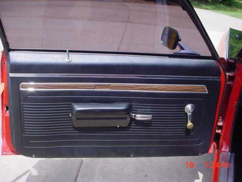 are clean and they align up very nice & straight. The Black, Red & White is all painted. The hood, the trunk and the doors open & close with ease and they all seal up nice & tight. The front fenders, the doors, the trunk lid, the cowl hood, the rocker panels are all nice, straight & clean. Both of the rear quarter panels are original. The trunk is nice & clean and comes with a spare & trunk mat. The floor pans are nice & original and are in good, solid condition. There is no signs of rust in or on the lower inside corners of the dash and there is no rust on or around any of the windows. The trunk jam, hood jam & door jams are all nice and are painted to match the body. The chrome