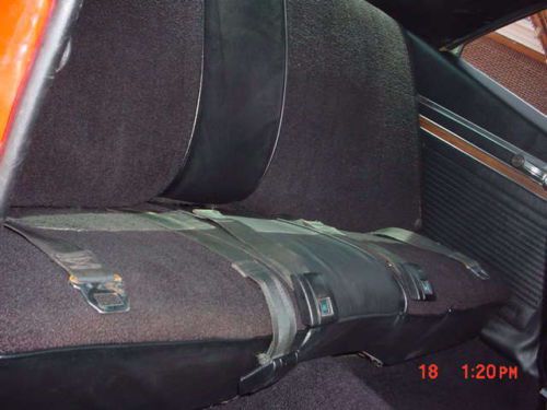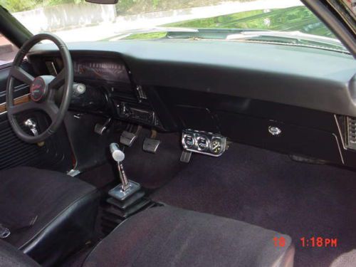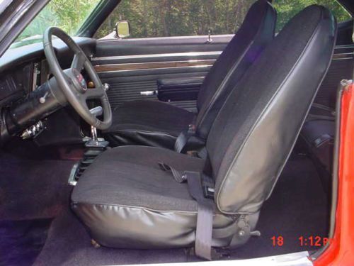 front & rear bumpers and all of the stainless trim is very nice and in good, clean condition. It has a nice set of SS Badges. One in the grill and one on the back located in the black SS trim panel. The metal grill is original and is in very nice condition. The parking lights, the marker lights and the tail light lenses are all nice and in good condition. Doors have a set of chrome sport mirrors. The window felts & sweeps, the rubber weather stripping, trunk seal, window seals & door seals are all in great condition. The windows roll up & down with ease and they seal nice & tight. The glass clean and original and the side and back windows are tinted dark black. INTERIOR It has a Nice & Clean all Black Interior with Bucket Seats. The seats have cloth inserts in the centers. The interior looks nice and is in good condition! The seats and carpet are clean and in nice condition. The dash pad, door panels, rear panels and the arm rest are all nice & clean and in good condition. The headliner, sun-visors and the rear deck panel are all nice & clean and are in good condition. There is a complete set of full functioning seat belt's for both of the front and the back seat. It has a working PIONEER-SUPER TUNER CD Player Stereo with a pair 6x9 speakers that are nicely mounted to the under side of the rear shelf. It has a set of gauges mounted under the dash.