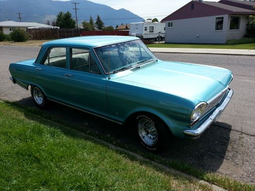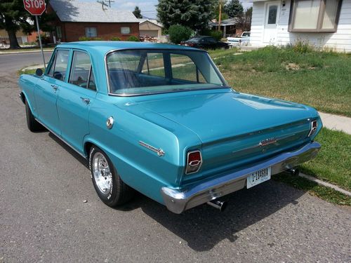 Very nice 1964 nova...I drive this car almost every day...very dependable...drive it anywhere....straight six with three on the tree...motor had been replace years ago..run excellent..great interior, some small tears in back seat and in head liner....but it is original..all new breaks "shoes,wheel cylinders and master and front brake hoses....new shocks all the way around...all new front suspension..ball joints upper and lower, tie rods inner and outer and pitman arm..new wheels and tires...new stereo with all the bells and whistles..come with jack for mp3 and phones..added seat belts so 6 people can buckle up....all the work had been done this year...paint and engine were done before I bought it three years ago. It dose have some small scratches and chips (this car is driven). the passager side floor has some rust ...not that bad...the rest of the car is really solid....It also has the original stereo and 13 inch wheels with the wire hub caps that came on it...the wheel bolt pattern is 5 lug which came on this car.