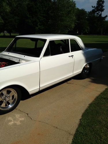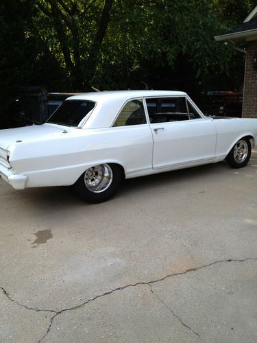 1965 Chevy 2 Nova Pro-Street Total Rebuild, Heidts Frontend, Dart 427 Small Block Alum. Heads 626 Bullet cam, 6" Rod Length, Bore 4.155 626 Bullet Cam, AED 950 Super Mod Carburetor, Custom headers & Burns Stainless Collector Mufflers, Power Glide trans, & Trans Bake, Tub Job by Gibbons Race Cars. Fab rearend 488 gear Strange 33 Spline Axels 4-link. American racing rims. 16 gallon fuel cell. MSD Digital 7 Wiring. All New Parts. Never Run on strip.