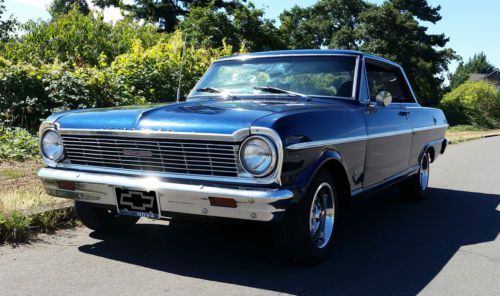 I'm selling my 1965 Chevy Nova Sport Coupe. It's got a 350 V8 with 350 Horsepower. Newly rebuilt motor with only 3600 miles on it so far. The engine has a sport cam and hydralic rollers and lifters and sports a Edlebrock 600 carb. Turbo Hydromatic 3 speed transmission with Hurst floor shifter, only 15k miles on it. Brand new front end, suspension and tires. Brand new calipers and pads on the front disc brakes and front wheel bearings. Newly replaced U-joints and brand new aluminum radiator/ thermostat. Smoke tinted glass all of the way around and very nice interior with racing seats with four point harness. Killer stereo, looks like an old school AM radio but is modern with AUX and 10 disc CD changer and Alpine power booster in the trunk. $30k invested over 20 years. A rediculously fast and loud old school hot rod.