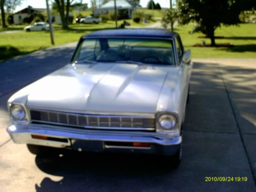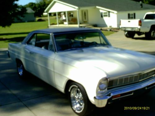 THIS IS A VERY NICE 1966 NOVA ( CHEVY II ) 2 DOOR HARD TOP , 400 SMALL BLOCK ENGINE , CUSTOM INTERIOR , CRAGER WHEELS , WHITE LETTER TIRES , COWL HOOD , CUSTOM VINYL TOP TO MATCH THE CUSTOM ENTERIOR , DUAL EXHAUST . OLDER PAINT AND RESTORATION , BUT STILL LOOKS VERY NICE !!!! ANY QUESTIONS ABOUT THIS CAR , PLEASE CONTACT ME ( ROD ) AT 1-304-489-9092 WOULD BE HAPPY TO TALK TO YOU !!!! , THANKS , AND HAVE A WONDERFUL DAY !!!!!