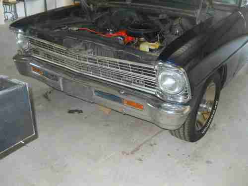 1967 Chevy Nova. I purchased the car 5 years ago. I had the interior reupholstered. Seats, front and back, headliner and carpet. The wheels and tires are BRAND NEW Goodrich TA and rally 15 inch wheels. The front are 225-60R-15, the backs are 245-60R 15. The car has set in a shop under a car cover for over 3 years. I am selling as i am building a 72 Chevy ShortWide for my grandson. Engine starts right up, brakes work great, drives down the road no problem. As you can see, there is no rust on the rockers, quarter panels or fenders. Glass is good, hass scrathces, just normal wear and tear on the vehicle. Few doors scratches. The right hand rocker damage and scratch i did loading the car after the tires were put on. The tires have never seen asphalt other than loading and unloading onto a trailer. Over all the car is in excellent condition. The wiper knob is missing. The CD player works great. The rear interior panels were removed when the upholstery was done. I do have them, yet they need to be covered or replacement ones installed. Doors shut good. Does need weatherstrips around car. The floor panes do need to be replaced. 3 Speed on the column has been moved to the floor before i purchased the car. The car is a easy V 8 ready to be installed car. I do have a posi unit available for the car which can be purchased seperately. I do have the car listed locally and reserve the right to end the auction early. I have a reserve price on the vehicle and am firm on my price. This car is too nice to just let go for a low price, yet i do wish to sell. Ask any questions and i will answer promptly. Thanks for looking!!!