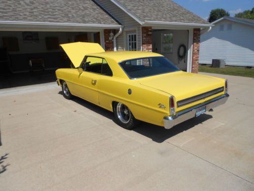 This the REAL DEAL 1967 Nova SS (not a clone) Fresh 408 cubic inch (500 miles) Brodix aluminum heads, Roller cam shaft and rollers rockers. 2920 Intake manifold with a 200 shot fogger system. Heidts front end with rack and pinion steering, Hooker ceramic coated headers, 750 Pro Form carb, All MSD ignition and two step box, Race Trans power glide, 9 inch with 4.11 gears, all new interior, Lazer straight body with no putty or rust anywhere. You can put a magnet on this car and it will stick anywhere on the car. Floor pan and trunk pan are excellent NO RUST !! Car has outstanding chrome and glass. This car was professionally built and it is in extremely nice condition. I am interested in either an outright sale or a possible trade............HOWEVER your car must be of equal or greater value !!! My car is 100% street legal and yours should be also otherwise I am not interested in it. I prefer Camaro's, Chevelle's, old coupe's or other interesting cars. Please be real with your trade offers or outright cash offers, I am not interested in trading for something that you want $25,000.00 for that's really worth $10.000.00 in the real world. The car is for sale locally so I reserve the right to end the auction at any time.