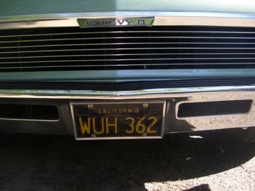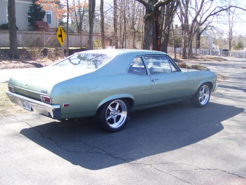 rust free cailifornia nova on the east coast! here we have a prime example of a 1968 chevy 2 nova.spent 95% of it's life in sunny,dry southern california. it has zero rust,never had any rust ever.one repaint,of it's original color, on all of it's original body panels.very hard to find anywere.more so on the east coast.it has been on the east coast in conn,for about a year.always garaged and pampered.runs perfect.bought brand new at felix chevrolet on los angeles ca.i would drive it back to the west coast and be confident doing so.runs excellent.it has about 8,000 miles on a complete new drivetrain. 350 cubic inch chevy v8,boasting about 300 plus hp.350 transmisssion with a mild shift kit.12 bolt rear with 3.08 highway gears. power steering.front power disc brakes.am/fm.cd,usb,bluetooth radio under the dash.original radio in uncut dash.factory transmission cooler.brand new street demon 625 cfm carb.runs perfect.all new bfg tires with beautifull ralley wheels,and brand new trim rings.also comes with brand new 17 inch billet specialites street lite rims and brand new kumo exta high performance tires with lugs.i just put a gm nos sport steering whell on it.it was brand new in the wrapper never used! you can have countless hours of fun with this car! bid with confidence.for sale locally,so i can stop auction at any time.please do not bid if you are not serious about buying the car.thanks for looking at my auction and good luck!