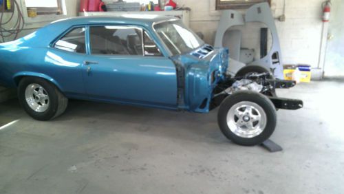 I have a 1969 nova , frame, rear end removed sand blasted primed and painted urethane new bushings new radiator front end all new upper lower control arms tie rods shocks springs new front disc brakes all new brake lines tranny lines fuel line new gas tank sending unit,turbo 400 fresh with shift kit , fresh posi rear end, motor fresh, new carb intake alt water pump power steering pump new steering box new shifter steering box , interior in good shape, new dash tach gauges front rear sway bars list goes on car is 44 years old not perfect but very good shape very little to finish to show quality