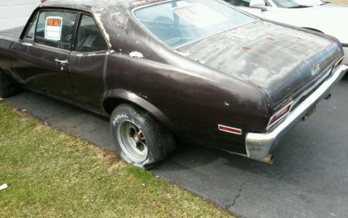 1970 chevy nova BARN FIND HAS NOT BEEN ON THE ROAD SINCE LATE 80S ....... DOES NOT RUN 350 CI, HEADERS , CARB , MANIFOLD,,,,,,, TURBO 400 TRANS 10 BOLT REAR CAR NEEDS RESTO WOULD MAKE A GREAT RESTO OR NICE RACE CAR TRUNK SOLID FLOORS HAVE SOME RUST..... SEE PICS TEXT BILL AT 201 6684433 WITH ANY QUESTIONS CAR IS LOCATED IN ENGLISHTOWN NJ ASKING 1900.00 BEST OFFER CASH TALKS. THANKS car has a clean and clear new jersey title in my name.