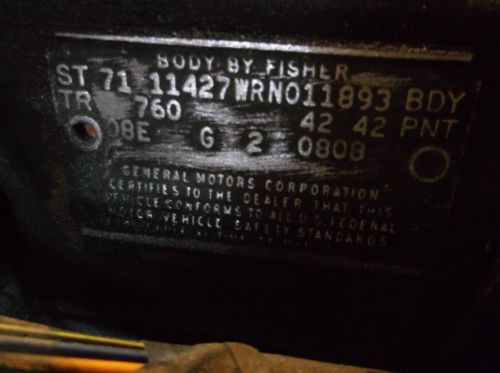 Looks runs & drives great 350 V8 Turbo 350 trany with a B&M shift kit, missing the front bumper, body and paint redone 8 years ago still looks good, some body filler used (not bad) dent on the left front fender, few spots on the right side lower could use some love ( all shown in the pics)beautiful interior except for a few cracks in the dash, mint frame, floors & trunk, If you would like to hit the buy it now call me 1st so I can tell you all about the car 617-799-6555 Jim