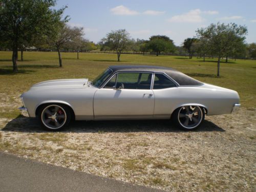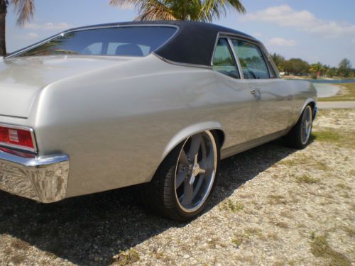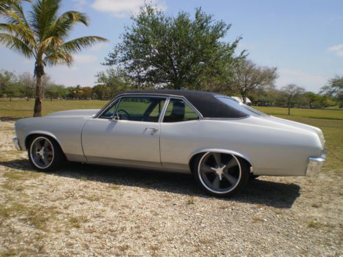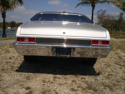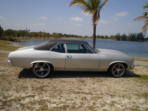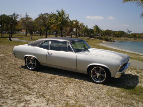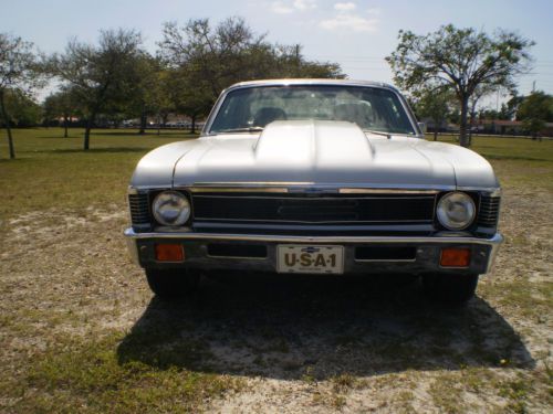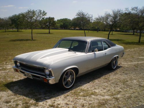 You are viewing a beautiful example of this 1972 Chevy Nova resto mod. The car recently just went through a Frame off restoration and everything was done to make it one Bad Ass Nova. The car was painted Brilliant silver metallic and was a rust free kentucky car its whole life. It has only 22090 miles on the original body . The Interior is all original except for the front seats. They are very nice cloth and suede and they hold you in nice and tight. The carpets ,headliner, dash and door panels are all in like new condition. there was a custom sound system installed and its looks and sounds amazing.Turbo 350 Transmission with a B&M shifter to give u the best in performance. The Engine was completely redone with all the best parts. Its a 350 Bored 40 over to make it a 358. The lower end is all Forged pistons, rods ,bearings ,crank etc. The heads were also redone and all new valves and guides were replaced. The car has a nice size cam in it and it has headers that are coated as well. The body was take off the frame and the frame was powder coated and painted and looks like new. The body was completely sanded and blocked and painted beautiful brilliant silver. The black vinyl top is original and looks like new. Inside the trunk you will see a 15 Gallon fuel cell. The wheels on the car were custom made by billet. They are awesome. 20" in the rear and 18 " in the front. The car has a beautiful stance and looks very mean. All the suspension is new and was fitted to house these wheels without any rubbing.Front brakes are Disc and the rear are drums.The rear end was narrowed and has a 10 Bolt Posi rear with 342 Gears. The car drives very strong and has Monster power. almost 500 Hp and it sounds amazing. I bought the car for a client who paid alot of money for it 6 months ago but he is buying a few super cars and some of the toys need to go. So I am pricing this car to sell and someone will get an amazing deal. There was over 45 k spent on this car in its restoration. Someone will have a great car to cruise or show and please understand its not for timid hearts. It has alot of power and draws attention. Please call me with any questions you have . Steve 954-464-3515