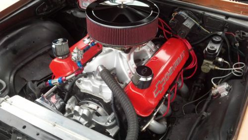 - 461 CI - Turbo 400 with trani brake, and line lock - Oval port heads - Crower lifters - Isky springs - Comp cam - No cage - Pro Magnum rocker arms - Steel crank - H series bearings, mini dome pistons - forged - Roller timing chain - MSD distributor, with 6AL box - B & M converter, with 3500 stall - Moser axles, with 5 on 4 3/4 bolt patter 4 wheel disc brakes - Ford 9" rear end, with 3.89 gears - Hooker headers - Hurst quarter stick shifter Excellent runner. Street or strip, goes straight. Adult owner who just has too many Chevy's, one has to go. |