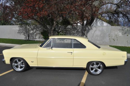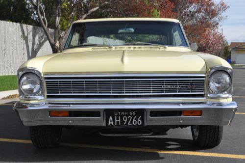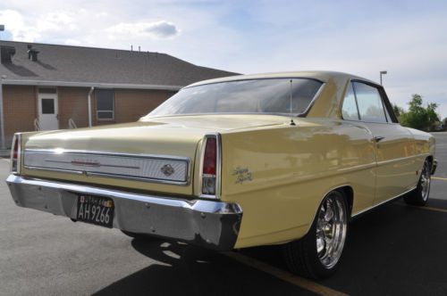 1966 CHEVY II NOVA 118 VIN TRUE SS... THIS IS NOT A NUMBERS MATCHING CAR BUT IT IS A VERY NICE HOT ROD! HAS 355 SBC WITH HOLLEY ALUMINUM HEADS AND TOP END KIT, 700R4 OVERDRIVE TRANS (CRUISES DOWN THE HIGHWAY AT @70MPH @ ONLY 1900 RPMS!!) 355 GEAR RATIO, FACTORY POWER STEERING CAR, BIG ALUMINUM GRIFFIN RADIATOR, VERY DETAILED ENGINE COMPARTMENT, INTERIOR IS IN EXCELLENT CONDITION WITH SS CONSOLE SET UP FOR THE 700R4, EVERYTHING WORKS AS IT SHOULD... WIPERS, HEATER, TURN SIGNALS, LIGHTS, RADIO, ALL GAUGES INCLUDING SMALL DIGITAL TACH WORK!, THIS CAR WAS RESTORED OVER THE PAST 8 YEARS OR SO AND HAS BEEN GARAGED AND COVERED WHEN NOT IS USE, CAR ONLY HAS A FEW THOUSAND MILES SINCE RESTO, THE NOVA HAS NEW 17 AMERICAN TORQ THRUST WHEELS AND NEW TIRES, PAINT IS BUTTERNUT YELLOW WITH A LITTLE BIT OF PEARL IN THE CLEAR, I WOULD RATE THE PAINT A 7-8 OUT OF 10, VERY STRAIGHT RUST FREE CAR, VERY SANITARY CAR AND PUT TOGETHER VERY WELL, I WOULD NOT HESITATE TO JUMP IN THE NOVA AND DRIVE IT ACROSS COUNTRY AND BACK! VERY DEPENDABLE CAR! I AM SURE I AM FORGETTING THINGS BUT IF YOU HAVE ANY QUESTIONS PLEASE GIVE ME A CALL ON MY CELL # 801-604-6425 OR SHOOT ME AN EMAIL THROUGH EBAY. ALSO IF YOU NEED ANY SPECIAL PICS TAKEN I WOULD BE GLAD TO TAKE SOME MORE. PLEASE IF YOU HAVE A ZERO FEEDBACK SCORE AND YOUR WANTING TO BID ON THE CAR YOU MUST CALL ME FIRST. (SERIOUS INQUIRIES ONLY) I DO NOT NEED HELP SELLING THIS CAR IT SELLS IT SELF! THANKS AND HAPPY BIDDING 1966 CHEVY II NOVA 118 VIN TRUE SS... THIS IS NOT A NUMBERS MATCHING CAR BUT IT IS A VERY NICE HOT ROD! HAS 355 SBC WITH HOLLEY ALUMINUM HEADS AND TOP END KIT, 700R4 OVERDRIVE TRANS (CRUISES DOWN THE HIGHWAY AT @70MPH @ ONLY 1900 RPMS!!) 355 GEAR RATIO, FACTORY POWER STEERING CAR, BIG ALUMINUM GRIFFIN RADIATOR, VERY DETAILED ENGINE COMPARTMENT, INTERIOR IS IN EXCELLENT CONDITION WITH SS CONSOLE SET UP FOR THE 700R4, EVERYTHING WORKS AS IT SHOULD... WIPERS, HEATER, TURN SIGNALS, LIGHTS, RADIO, ALL GAUGES INCLUDING SMALL DIGITAL TACH WORK!, THIS CAR WAS RESTORED OVER THE PAST 8 YEARS OR SO AND HAS BEEN GARAGED AND COVERED WHEN NOT IS USE, CAR ONLY HAS A FEW THOUSAND MILES SINCE RESTO, THE NOVA HAS NEW 17 AMERICAN TORQ THRUST WHEELS AND NEW TIRES, PAINT IS BUTTERNUT YELLOW WITH A LITTLE BIT OF PEARL IN THE CLEAR, I WOULD RATE THE PAINT A 7-8 OUT OF 10, VERY STRAIGHT RUST FREE CAR, VERY SANITARY CAR AND PUT TOGETHER VERY WELL, I WOULD NOT HESITATE TO JUMP IN THE NOVA AND DRIVE IT ACROSS COUNTRY AND BACK! VERY DEPENDABLE CAR! I AM SURE I AM FORGETTING THINGS BUT IF YOU HAVE ANY QUESTIONS PLEASE GIVE ME A CALL ON MY CELL # 801-604-6425 OR SHOOT ME AN EMAIL THROUGH EBAY. ALSO IF YOU NEED ANY SPECIAL PICS TAKEN I WOULD BE GLAD TO TAKE SOME MORE. PLEASE IF YOU HAVE A ZERO FEEDBACK SCORE AND YOUR WANTING TO BID ON THE CAR YOU MUST CALL ME FIRST. (SERIOUS INQUIRIES ONLY) I DO NOT NEED HELP SELLING THIS CAR IT SELLS IT SELF! THANKS AND HAPPY BIDDING